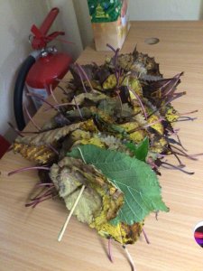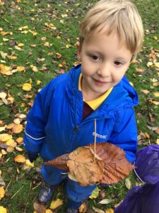 In Forest School we have been thinking about autumn. The children created their own leaf kebabs and enjoyed filling up their skewers.