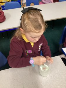KS1 Science Club had a fab time this afternoon investigating reactions that produce gas! First we looked at how we can use soap to trap the gas and make the reaction larger! Children have created their own bubble art and made mini volcanic eruptions!
